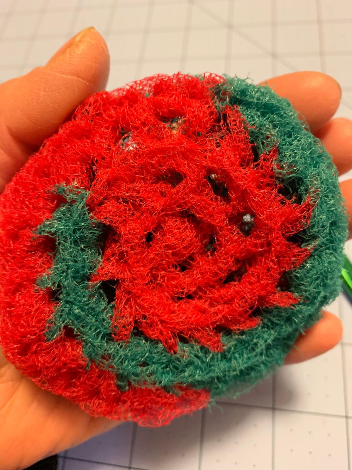 Put the ends of two different strips together and knot them, repeat, tying all 6 strips together to create one long piece of nylon net.